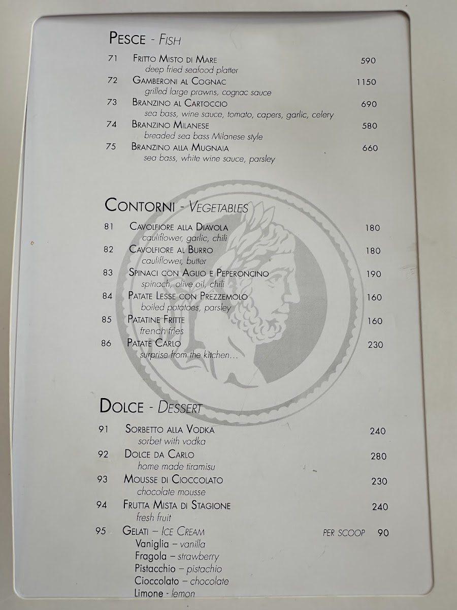 Carlo Ristorante Italiano Menu